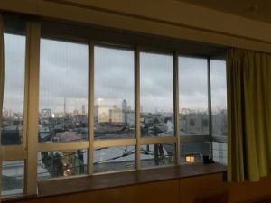 17時になるともう教室はかなり薄暗いです。でも、窓から見える夜景はきれいです。写真はそれを伝えたくて掲載しました。