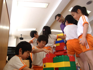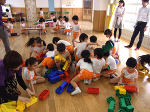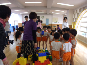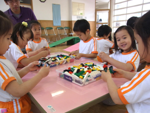 「さあ遊びましょう」と声がかかると我先にとレゴブロックに触れ、協力して大きなものを作ったり、一人一つ車を作ったりと、とても楽しそうでした!!