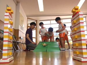 そして、楽しい時間はあっという間に過ぎ、終了の合図が。子どもたちからは、「えーもっと遊びたい」「まだ作りたい」という声が上がりました。またみんなで大きなレゴブロックや車を作って遊べるといいですね。