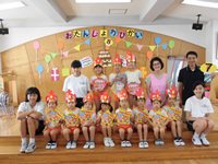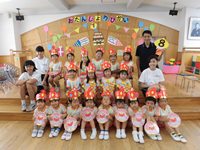 学年の歌は年少さん「うちゅうせんのうた」年中さん「ニャニュニョのてんきよほう」