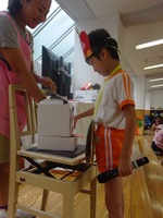 音楽に合わせて、舞台に上がり、先生からカンムリをかぶせて頂き、今日の主役が並びました。