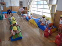今日は、年少組の体操教室が講師の先生をお招きして行われました。