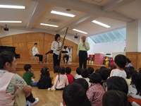 東邦音楽大学のお兄さん、お姉さんが幼稚園に来て、木管楽器(オーボエ、クラリネット、ファゴット)の演奏を聴かせて下さいました。