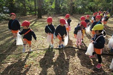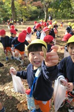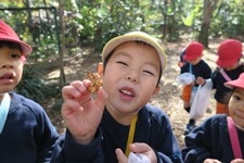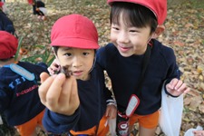 黄色や赤に変化した葉っぱを見つけて「先生見てー」と教えてくれます。 木の実を見つけたり、鳥の鳴き声を聞いたり、自然を満喫し、お土産もたくさん見つけました。 みんなで身体を動かして遊んだ後は幼稚園まで戻ります。 横断歩道では、左右の確認、手を挙げて渡ることが上手に出来ました。 またみんなで遊びに行こうね。