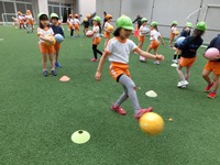 12月7日(金)に年長組を対象としたサッカー教室を中庭で行いました。