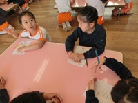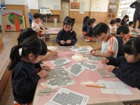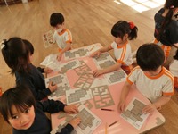 手早く完成出来た子はほんのわずか。「むずかしい~」「わからない~」と嘆く子も居ました。