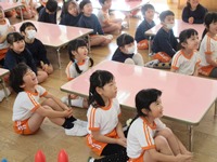 まずは、ひらがなを使った問題を解きました。左右上下に回転した文字から正しいものを見つける問題です。よく見て考えなければなりません。皆とても集中し問題を解く姿があり、答え合わせをして正解した時の喜びはとっても大きかったです。