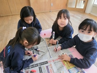 今日は紙トンボを作りました。羽根に好きな色で絵を描いたり色を塗ったり素敵な紙トンボが出来上がりました。それからみんなで飛ばして楽しく過ごしました。