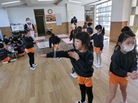 「地震が発生しました」というアナウンスに園児達は部屋の真ん中でダンゴムシポーズになったり、机の下にもぐって、大切な体を守りました。