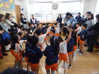 英語のレッスン以外の時間は、年少は親子で製作、年長年中は、学年対抗ドッジボール大会で保護者の方々に元気な姿をご覧いただきました。