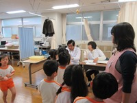 4月18日(木) 歯科検診を行いました。 歯医者さんに大きなお口を開けて歯を見ていただきました。 年少さんは初めての歯科検診でしたが、泣く子も少なく歯医者さんに歯を見せることができていました。 年中長は一つ学年も上がり、きちんと「ありがとうございます。」と言っている姿が見られました。 待っているときは少し緊張している様子が見られましたが、歯医者さんに歯を見せるときは落ち着いて受診することができていました。