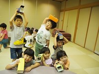 ホテルの方にご挨拶をし、昼食を食べ、【おばけシアター】の製作を行いました。