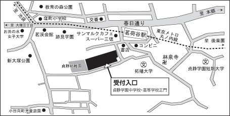 ※入り口は中学校・高等学校の正門となります。(幼稚園門ではありません。)