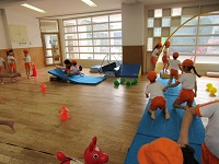 11月11日(月)に年長組の体操教室があり、今回も講師の諏訪先生にご指導いただきました。