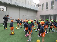 その後、4チーム総当たり戦でボール2つを使用した試合を行いました。どの試合も全力で頑張る姿が印象的で、とても活き活きとしていました。
