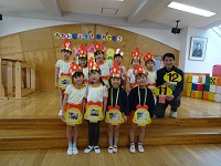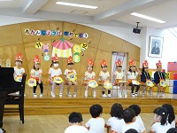 今日は12月のお誕生日会がありました。 12月はクリスマスということで2つのプレゼントが届きました。 その中にはサンタクロース、雪だるま、クリスマスツリーが入っていました。 サンタクロースが入っていたらクリスマスに欲しいもの 雪だるまが入っていたら大きくなったら何になりたいか クリスマスツリーが入っていたら子どもたちからの質問ということで、 子どもたちはプレゼントの中に何が入っているのだろうとワクワクしながら参加していました。 本日はおせんべいをいただきました。