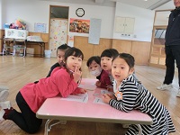 最初のうちは簡単だった問題も後半になるにつれ、ひっかけ問題やちょっと違う形の正方形等、難易度が上がってきましたが、一所懸命に考え、正解すると嬉しさを体中で表す姿も見られました。