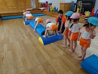 後半グループは高さのある跳び箱にチャレンジしましたが、どちらのグループも跳べた喜びが自信へと繋がったように感じました。