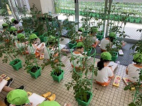 幼稚園に帰ってきてからは、大きくたくさんなったトマトを観察し、自由画帳に絵をかきました!