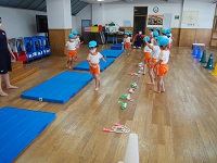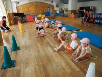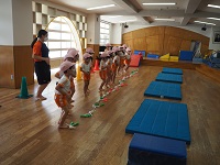 初めにジグザグ走りを取り入れたサーキッドのルートを覚え、その後コースの中に両足ジャンプの動きをいれていき、遊びの中でジャンプを楽しみました。