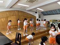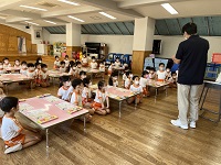 昨日、年長組のサイエンスがあり紙トンボで遊びました。 牛乳パックを短冊状に切り、ストローにホチキスで止めた紙トンボに、クレヨンで好きな絵や色を塗って自分だけの紙トンボを作りました。 そして、いよいよ紙トンボの飛行です。 羽根を少し斜めに折り曲げ、ストローを両手に挟み、手をこするようにして飛ばします。 天井まで飛んだ。うまく飛ばない。 羽根の角度や飛ばし方を工夫して、上手に飛ばすことが出来ました。