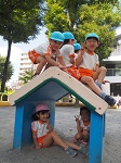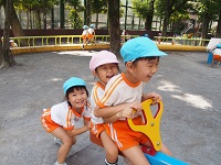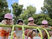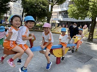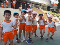 9月30日(金)、年中組は教育の森を通って長い道のりを一生懸命歩き「大塚窪町公園」に行きました。 みんなで行くのは初めての公園なので出発前から張り切っている子どもたち。 いざ公園に着くと、楽しみにしていたお舟は工事中で立ち入ることは出来ませんでしたが、広い滑り台やシーソーに乗って友だちと遊びたくさんの笑顔が見られました。 涼しい風が吹く中、秋を感じてどんぐりや草花を拾いました。思いっきり体を動かしてのびのび遊んだ一日となりました。