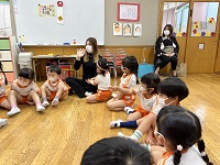 英語では、カラーソング、ハロウィンダンスの他に、食べ物、フルーツの英語を教えて頂きました。