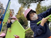 年中組はどんぐりを拾いに行き少し時間があったので遊具で遊ぶことができました。
