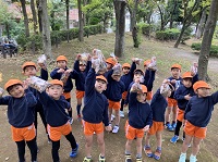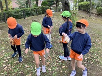 年長組は製作で使う落ち葉を拾いに行き、いろんな色の葉っぱを嬉しそうに自分の袋に入れている姿が見られました。