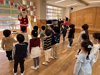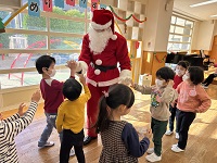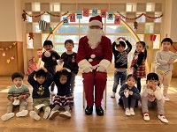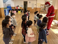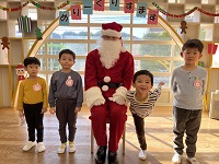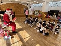 最後に園長先生サンタさんからクリスマスプレゼントをいただきました。代表の園児がプレゼントを受け取り、しっかりとお礼を言うことが出来ました。
