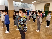 始業式では、園長先生のお話を聞きました。今年の目標をお願いするだけではできるようにならないが、頑張って努力をすると神様が手伝ってくれる、というお話をして頂きました。子どもたちからも「たくさん練習しないとね」等の声が聞こえてきました。