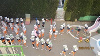 登園後の身支度を済ませ、保育室にて自由遊びや、園庭遊びをしているクラス、お片付けの時間や、朝のお集まりをしていたクラスと様々な状況の中、避難訓練が行われました。