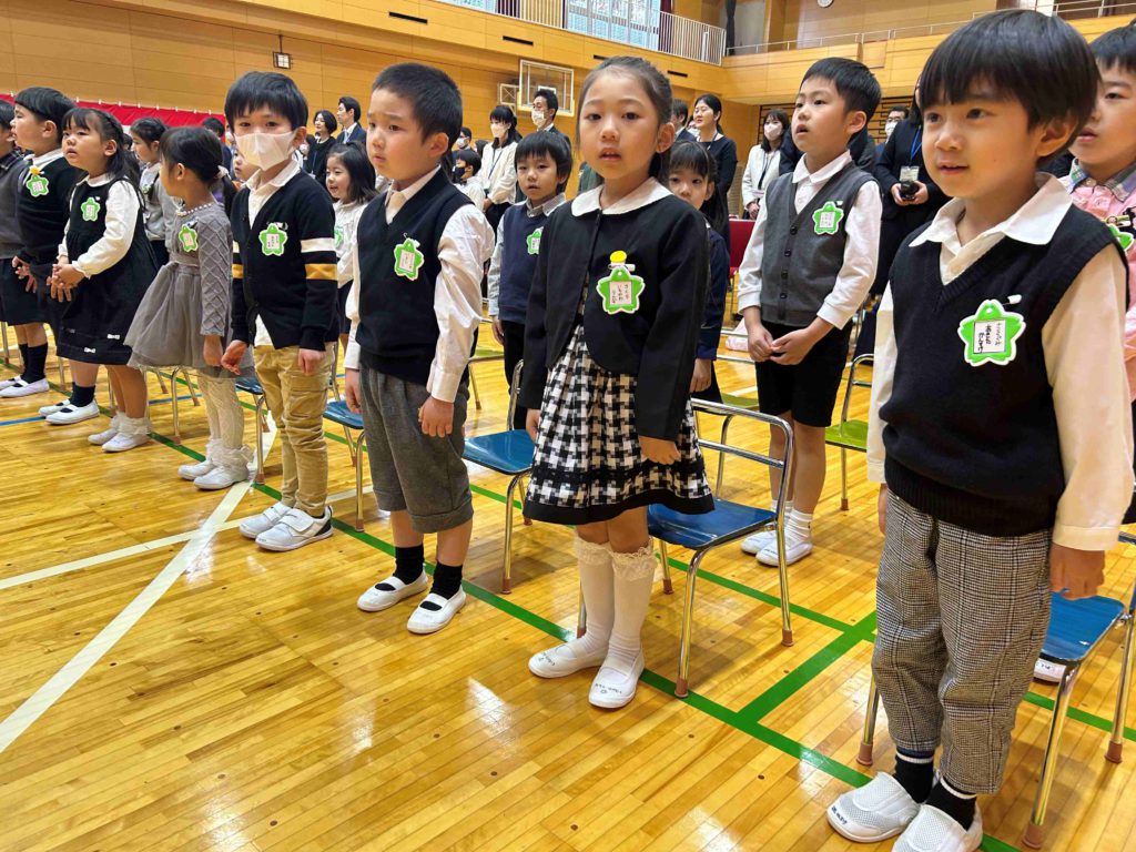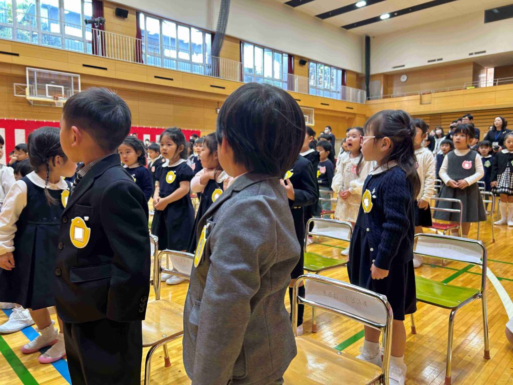 今日から幼稚園生活が始まることに、期待と緊張の様子が見られました。