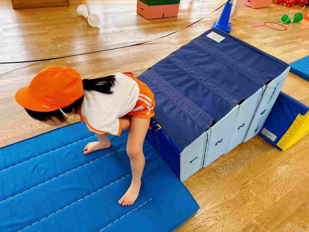 今年度初めての体操教室。4人の講師の先生に見守って頂き、今回は跳び箱の導入としてサーキットを行いました。
