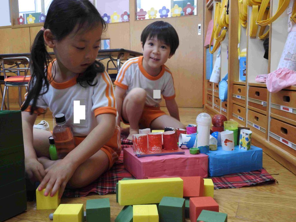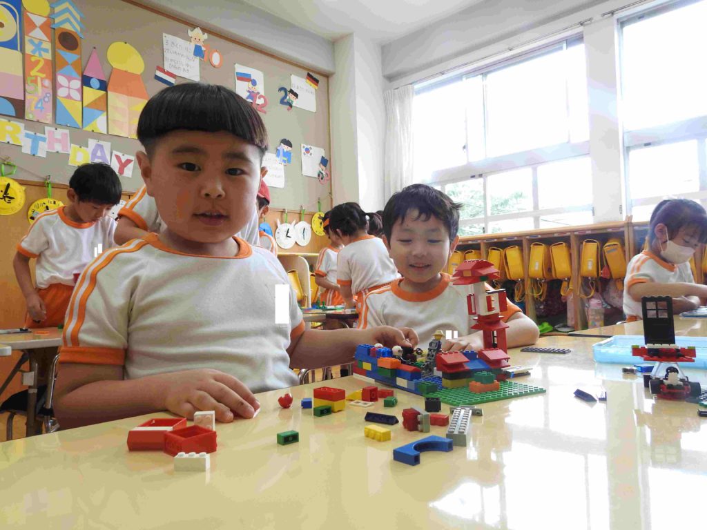お弁当の時間ぐらいから雨が降り出してきました。外に出られないので、今日は「室内遊び」です。