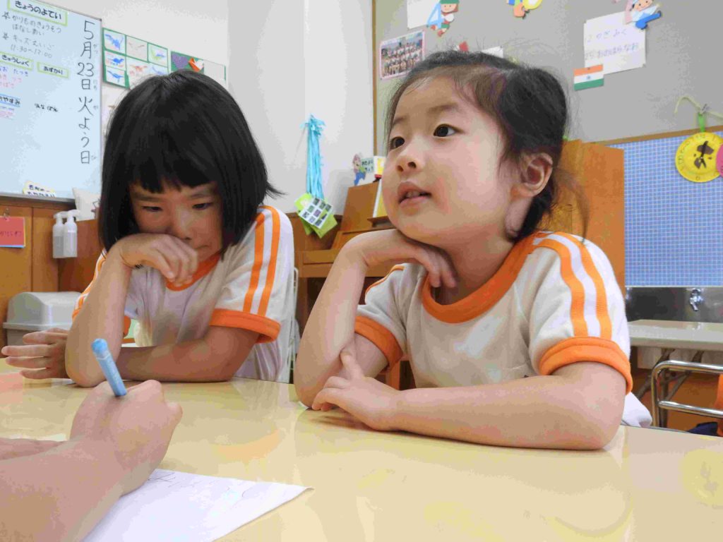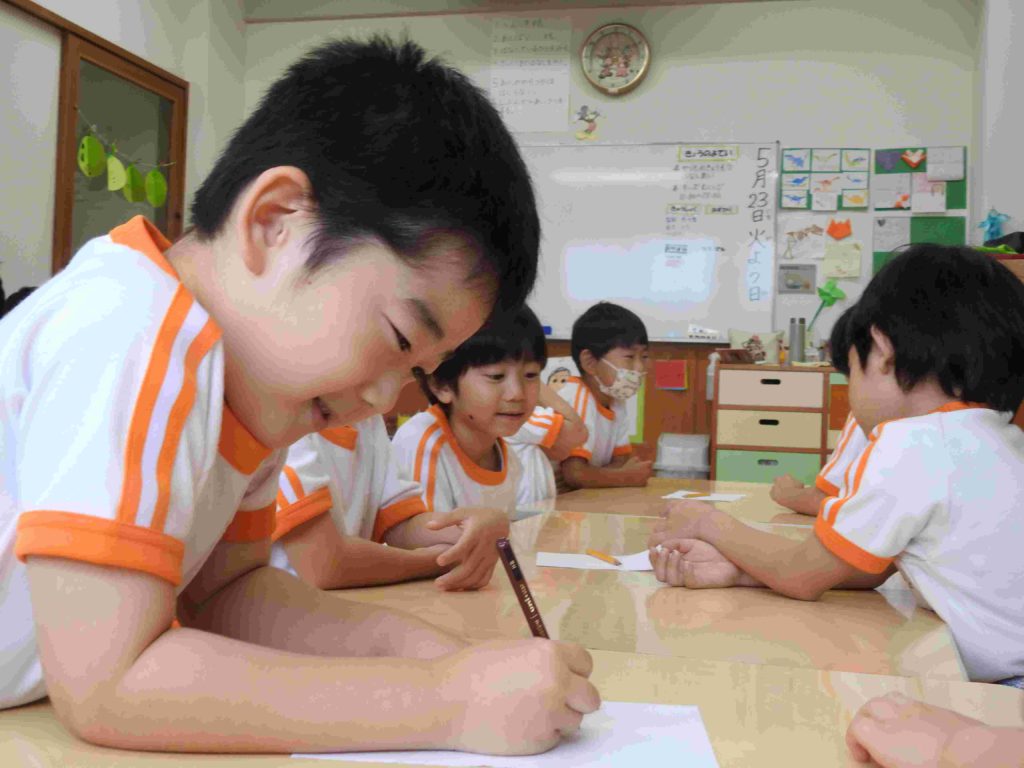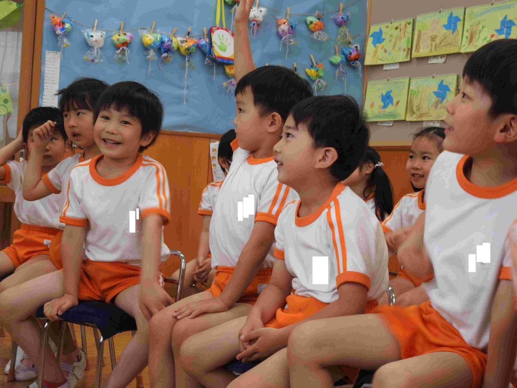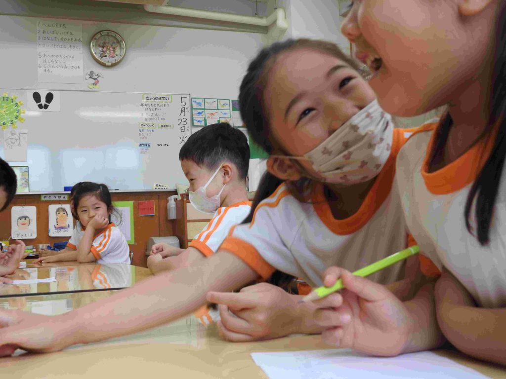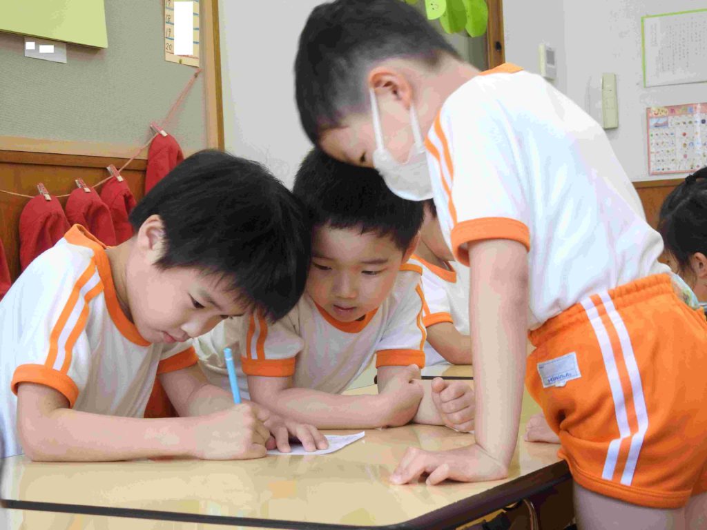 今日は、運動会種目「借り物競争」の「借りるものを決める」話し合いをしました。自分たちで考えることで、運動会により積極的に主体的に取り組めるようになると担任の先生は考えています。がんばれ、年長組!