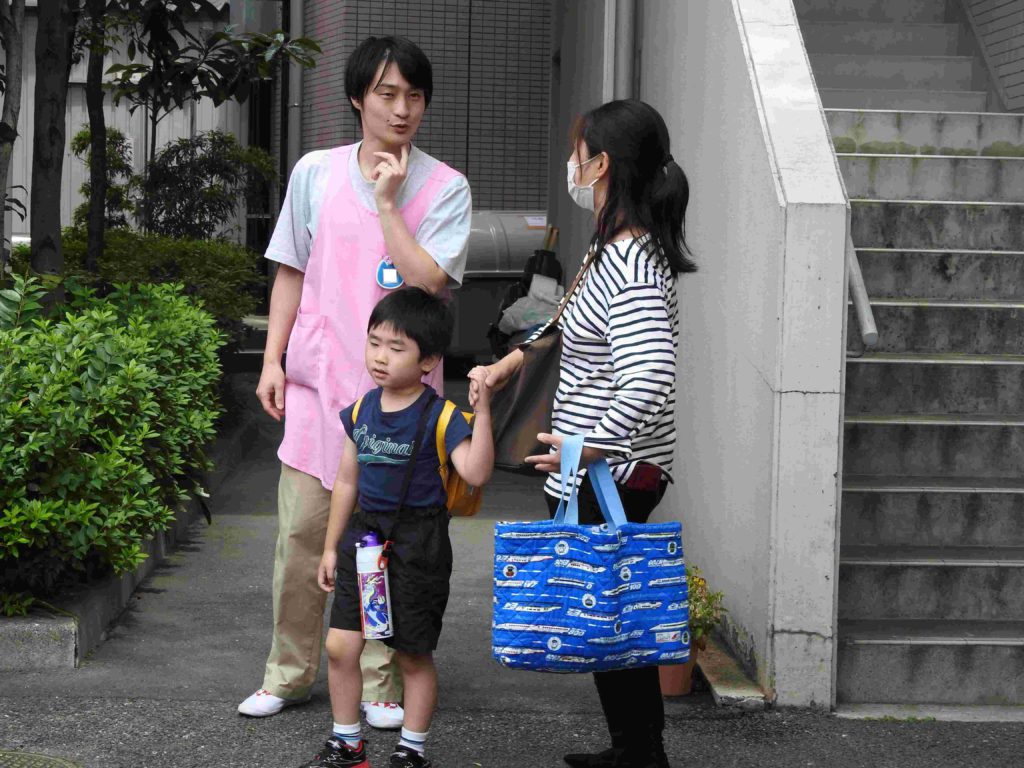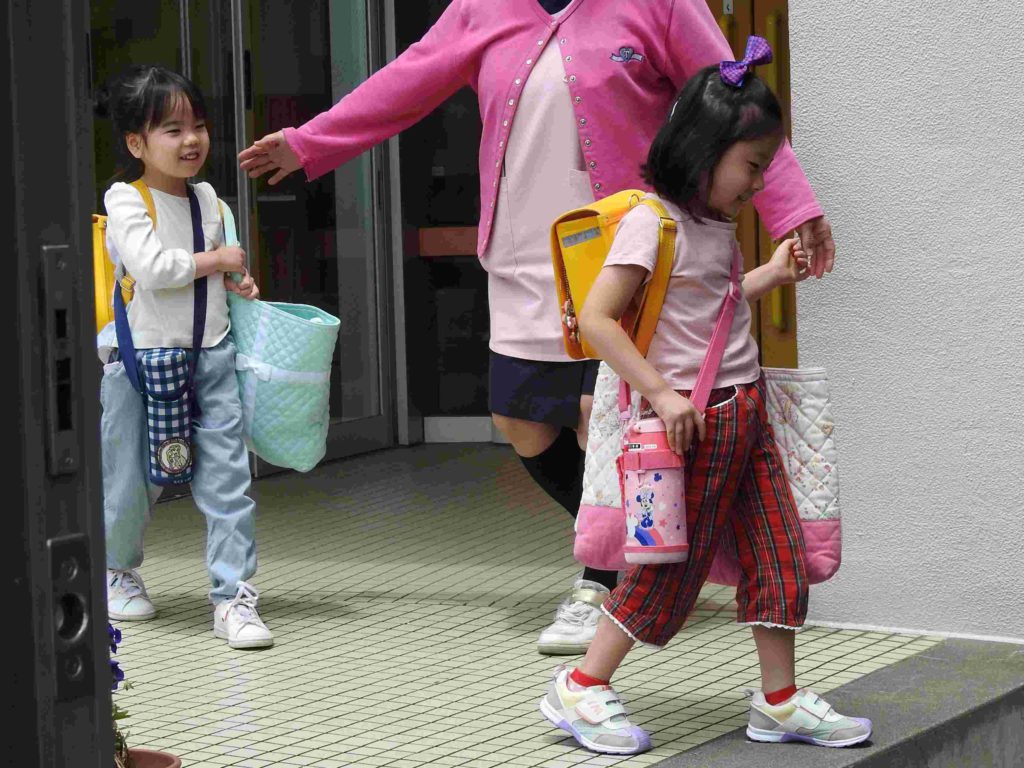 今日は午前保育で降園でした。いつもより早いお迎えがうれしい様子で、元気いっぱいに帰る園児がたくさんでした。「また明日ね!」