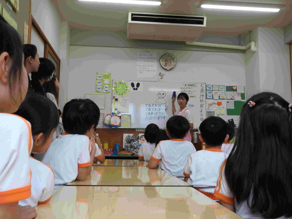 29日(月)「保育参観第2日」でした。生憎の雨模様のため、子どもたちが園庭で楽しく元気に遊ぶ様子を見ていただくことはかないませんでした。しかし、今日も子どもたちが一生懸命活動している姿に目を細める保護者の皆さま、子どもたちの言葉や先生の言葉にうなずく保護者の皆さまがいらっしゃいました。お忙しいところ、参観くださりありがとうございました。