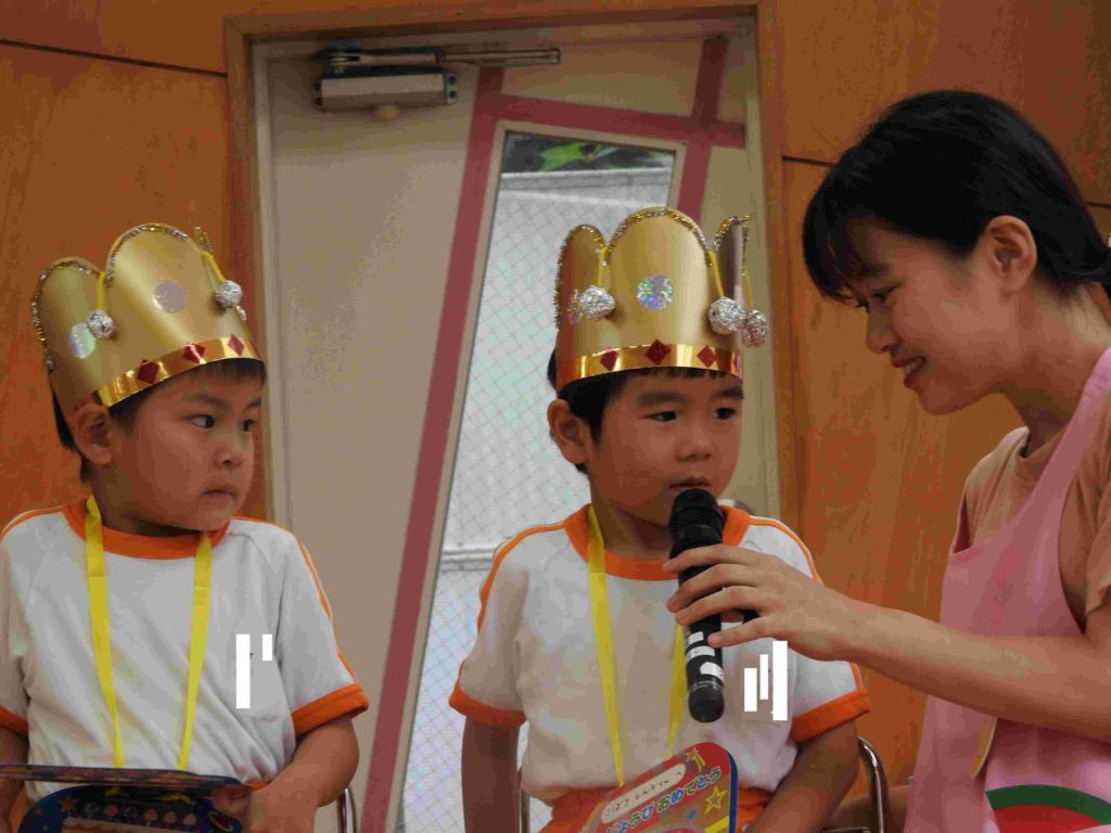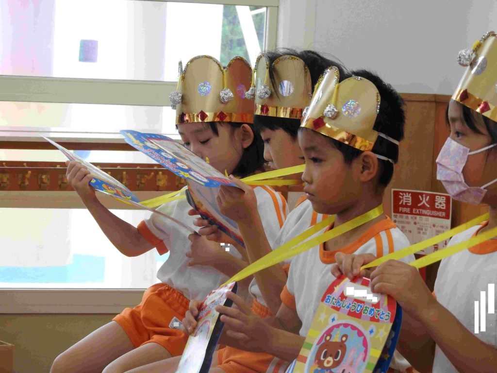 14日に7月・8月生まれのお友だちの誕生日会をしました。もうすぐ夏休みということで、「夏休みにしたいこと」をインタビューしました。子どもたちからは「公園に行きたい」「遊園地に行きたい」などの答えが返ってきました。夏休みを楽しみにしているんだなあ、と微笑ましく感じました。 歌をプレゼントしている時に、「この歌知ってる!」と他学年の歌でも一緒に口ずさんでいるお友だちもいました。終業式までの残りの数日も、楽しく過ごしましょうね。