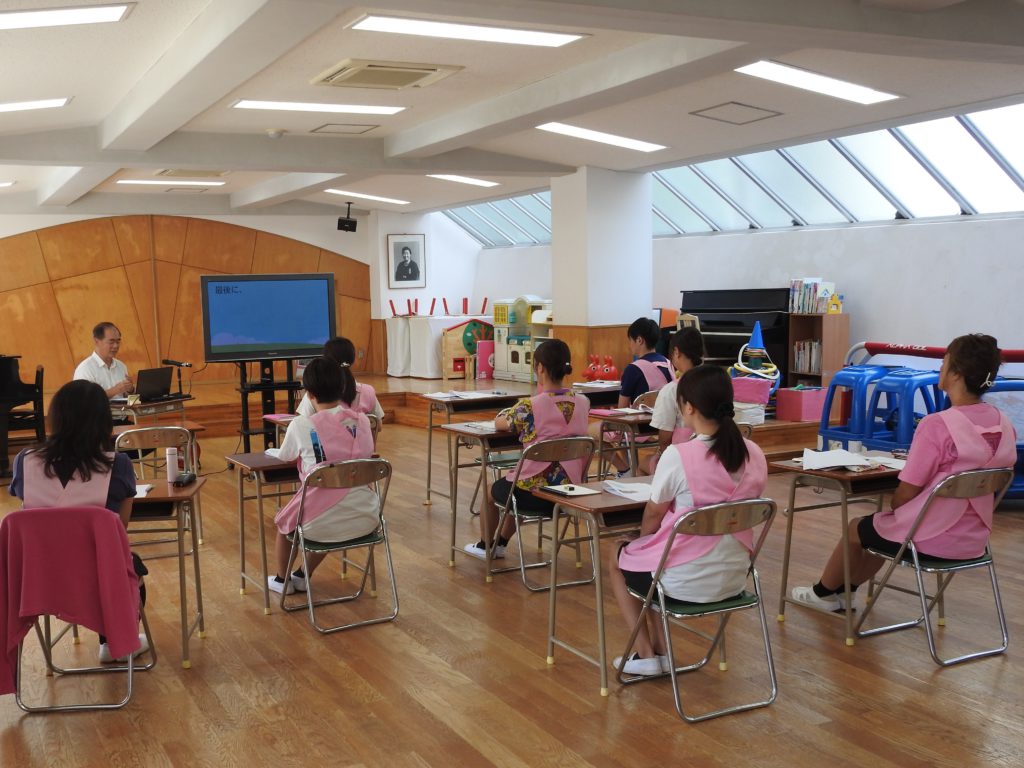 ついに夏休みも終わりです。明日は始業式、園児の皆さんの元気な顔と会えることを先生たちは楽しみにしています。 2学期に向けて、幼稚園では研修会を行って勉強をしました。また、幼稚園内外をきれいにして、子どもたちを迎える準備も万端です。 「みんな、待ってるよ!」