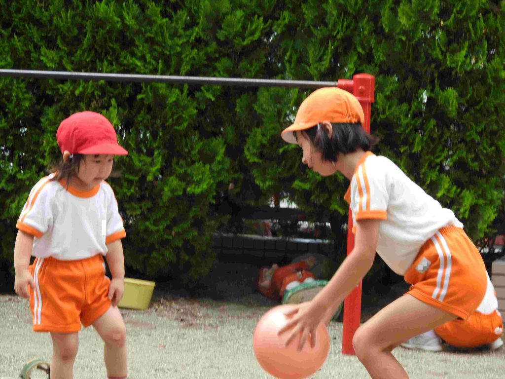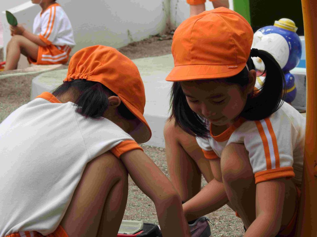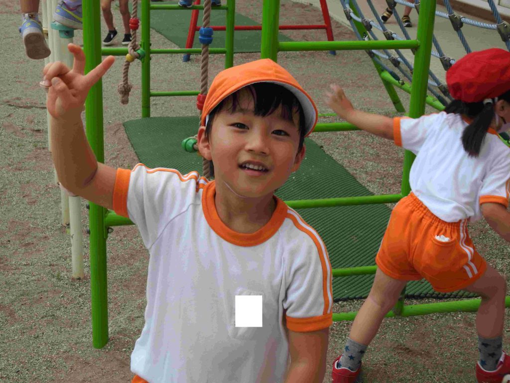 登園すると子どもたちは体操着に着替えます。そうすると、自由遊びの始まりです。遊ぶ場所については担任の先生からお話があります。鬼ごっこ、砂遊び、鉄棒、滑り台、遊具、電車ごっこ…学年を越えて遊んでいる姿もあります。子どもたちの楽しそうな様子に私たちも笑顔がこぼれます。