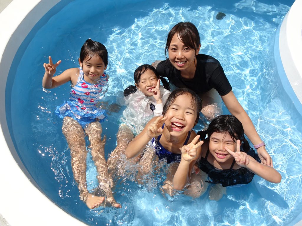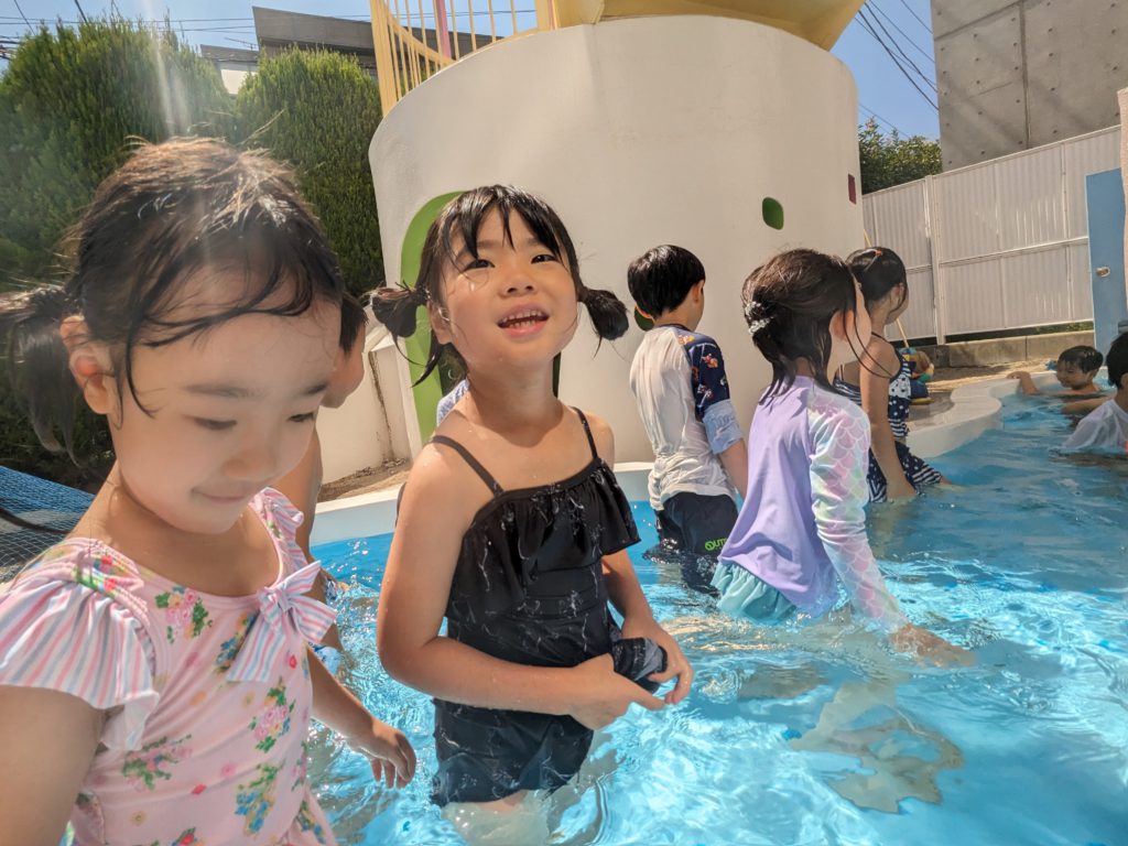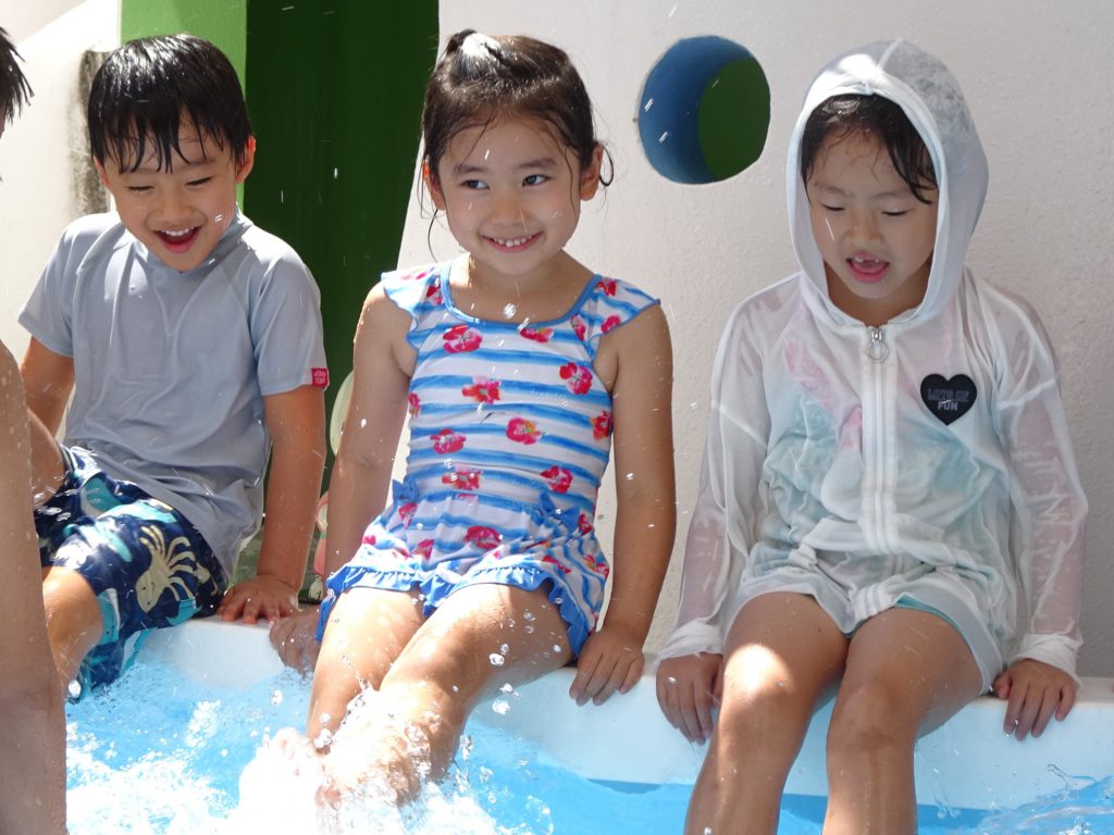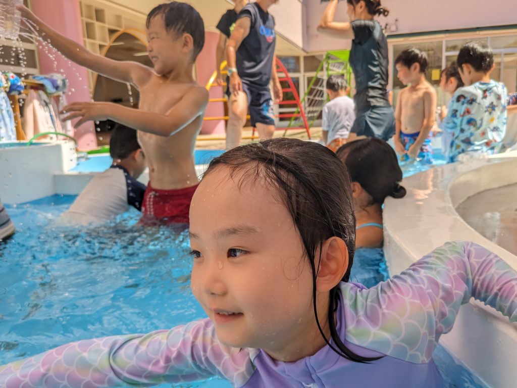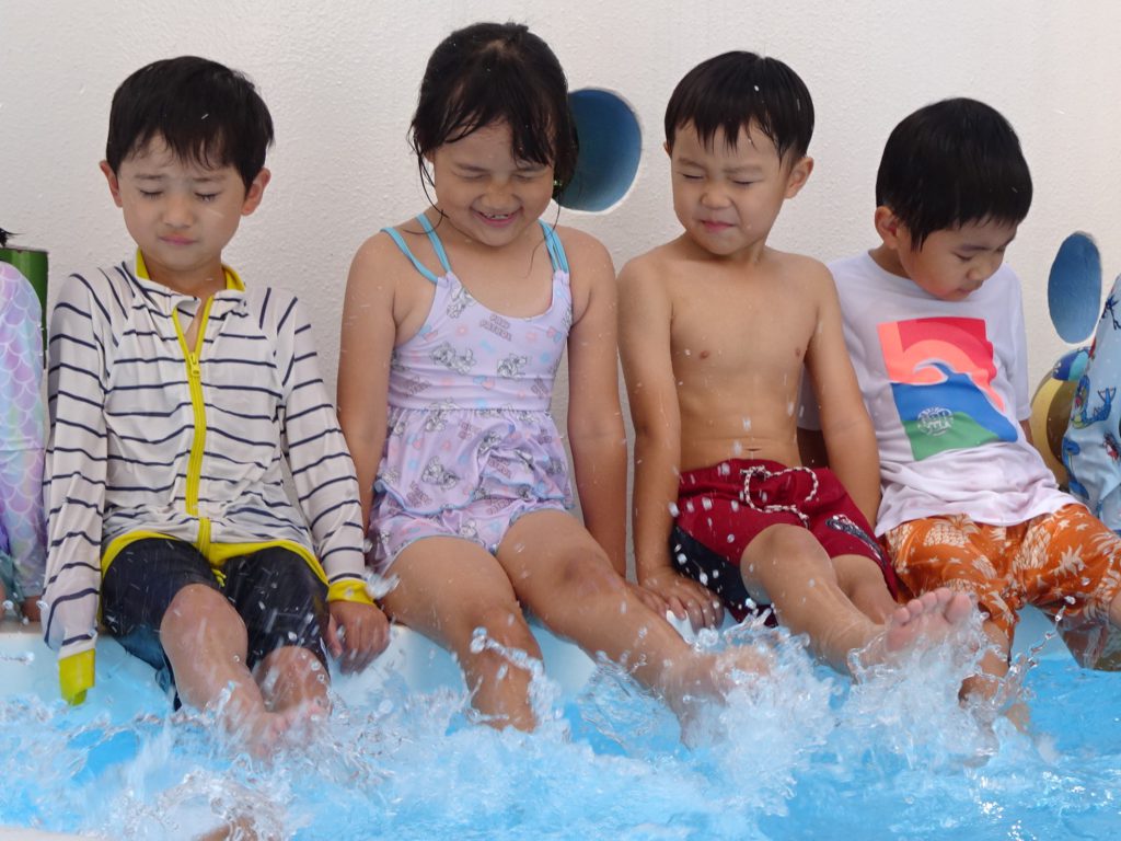 今日は最後のプール、年長「きく組」が楽しみました。9月とはいうものの残暑が厳しく、今日は35℃を上回る気温でした。真夏を思わせる太陽のもと、幼稚園のプールに今シーズン最後の歓声が響きました。幼稚園最後のプール、楽しかったかな?