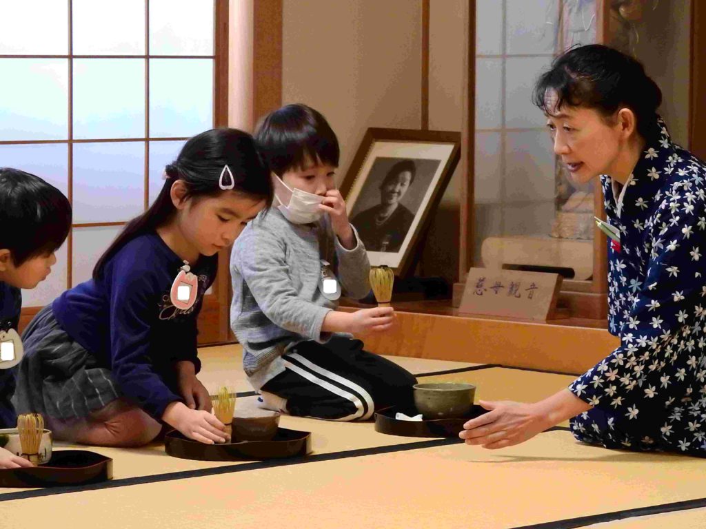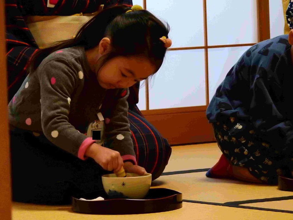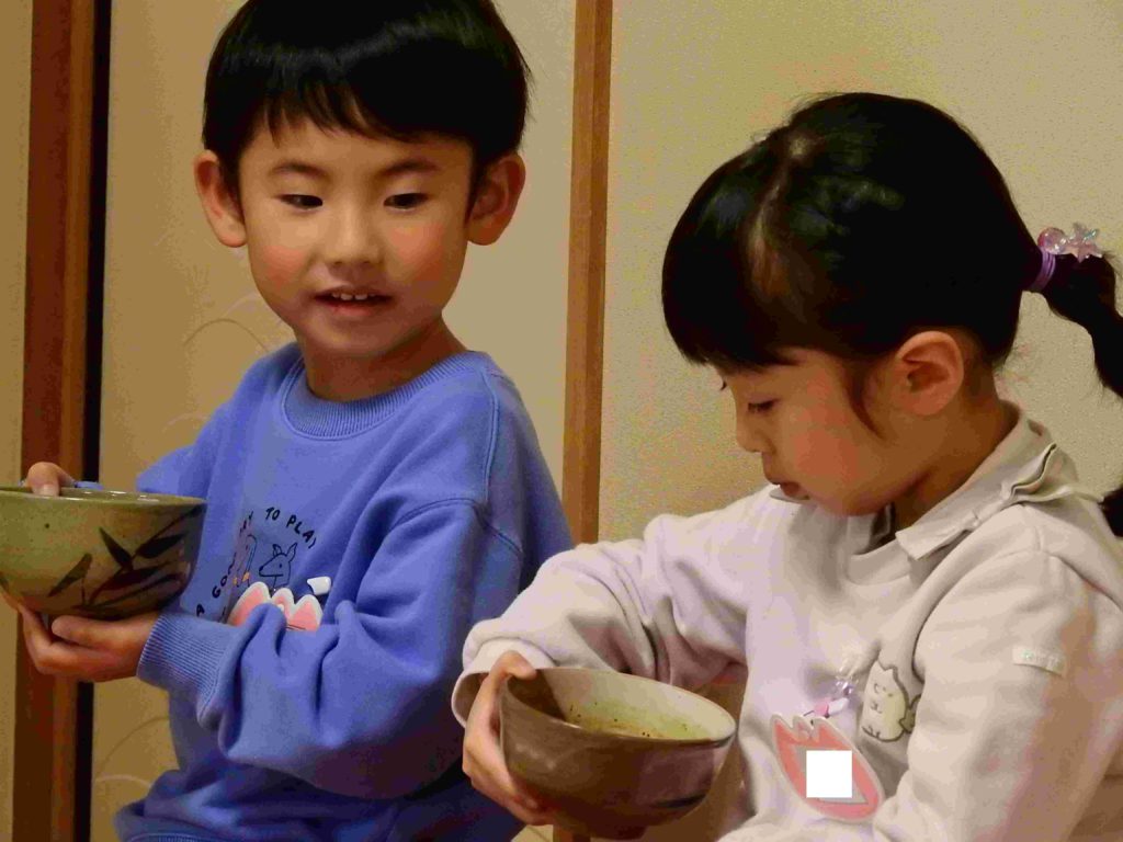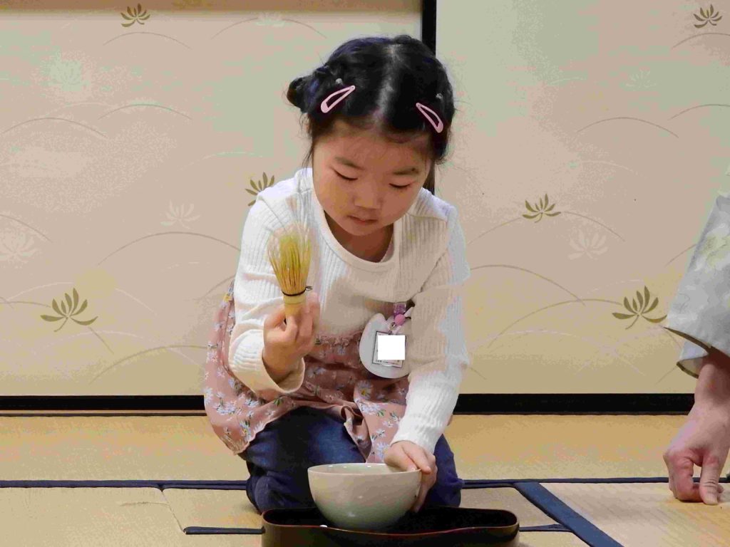 年中組の「お友だちへのお茶会」の様子です。このように静粛な時間があることは、子どもの心を涵養するためにはとてもいいと思います。お茶の先生からもとても上手だとお褒めの言葉をいただいています。来週の、保護者を招く「お茶会」が楽しみです。