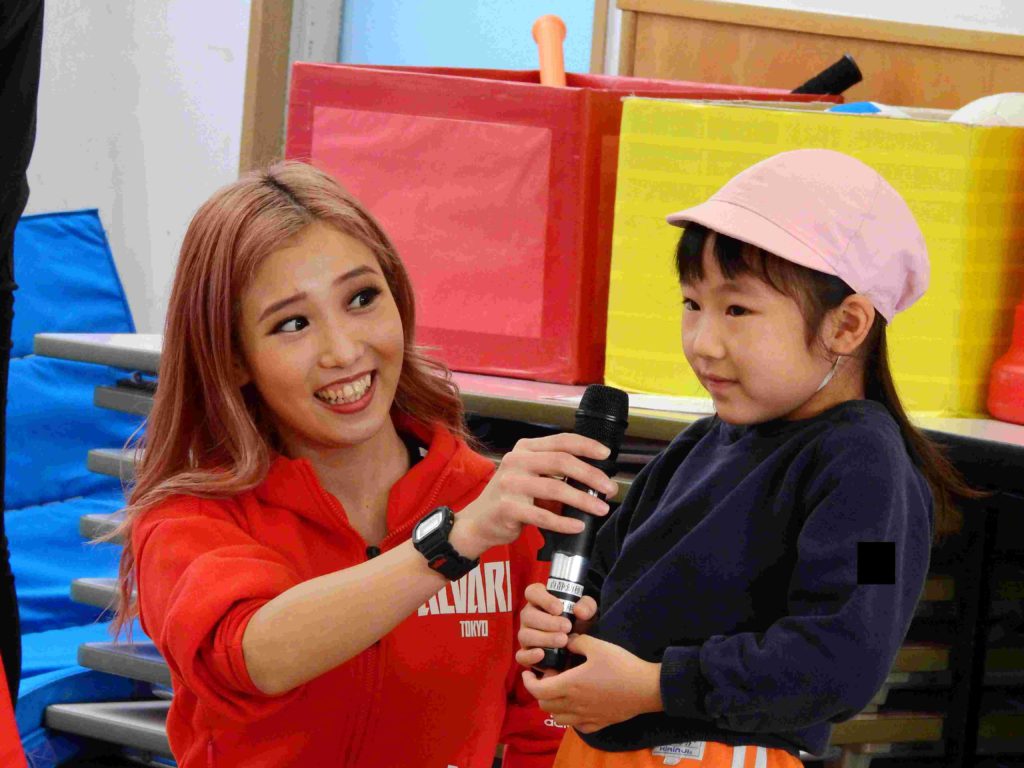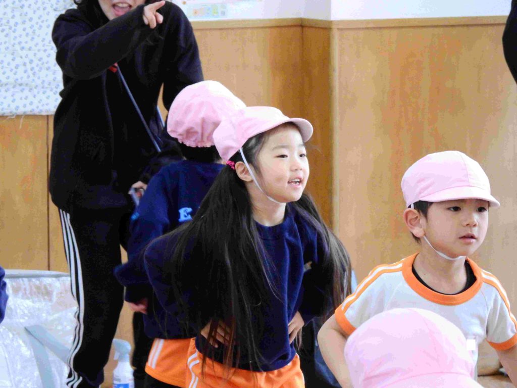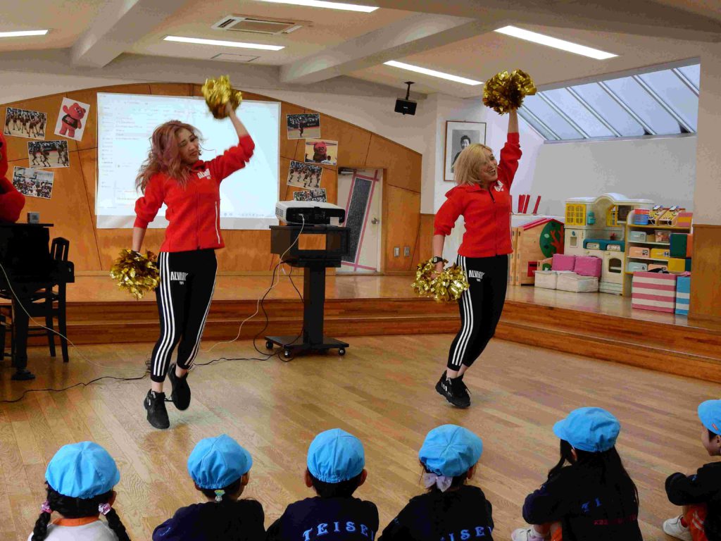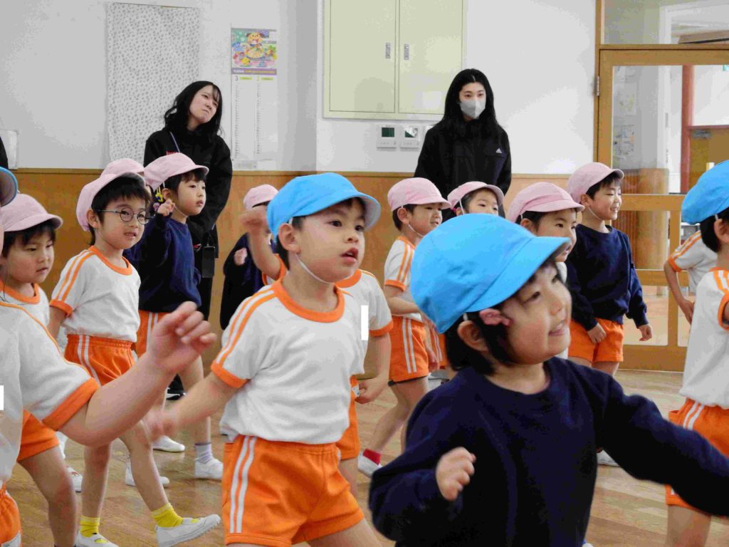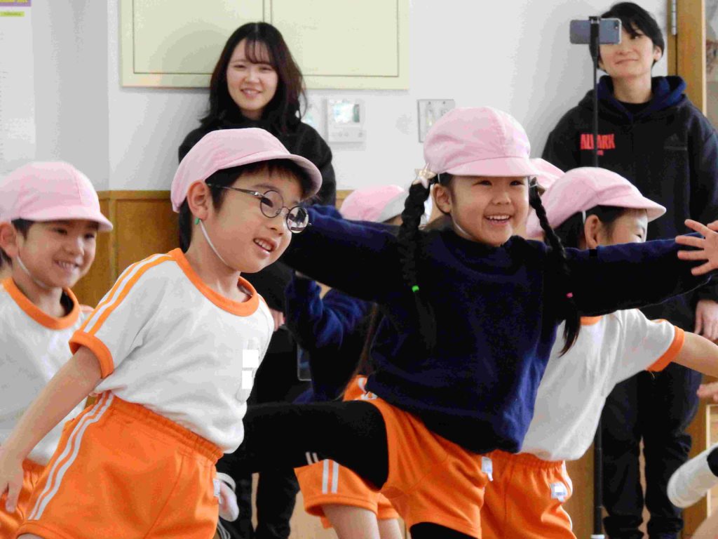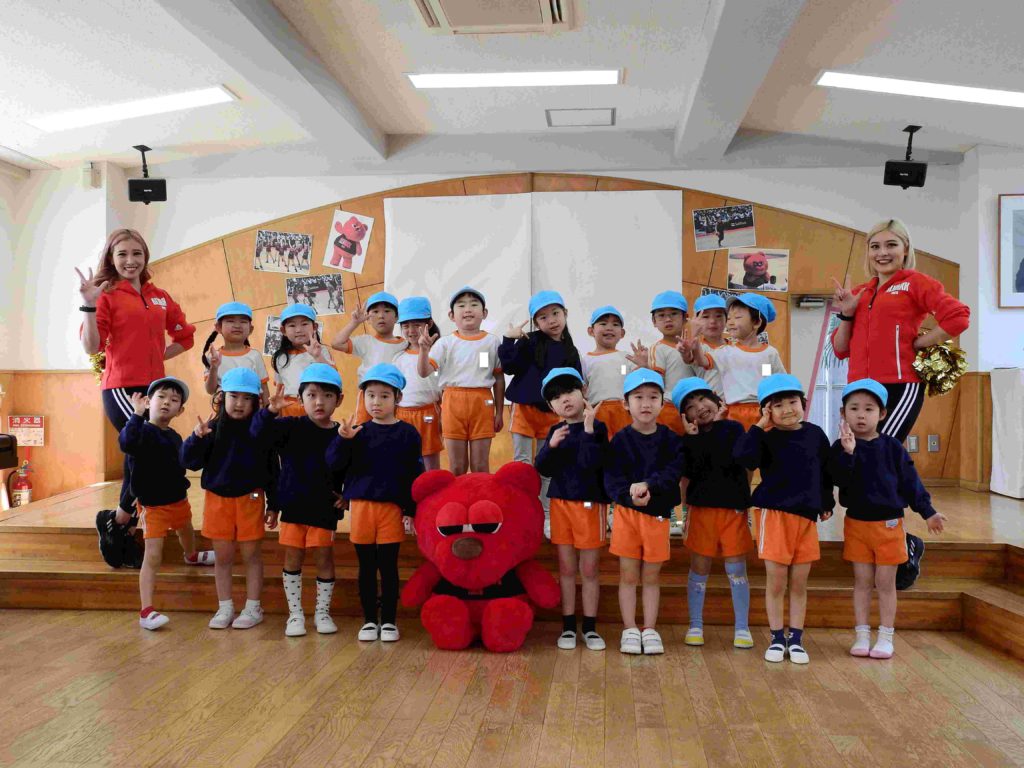 「楽しかった」「またこの曲で踊りたい」「今度バスケットボールを観に行きたい」チアダンス教室が終わった後、年中組の子どもたちは口々に話していました。笑顔いっぱいの年中組です。