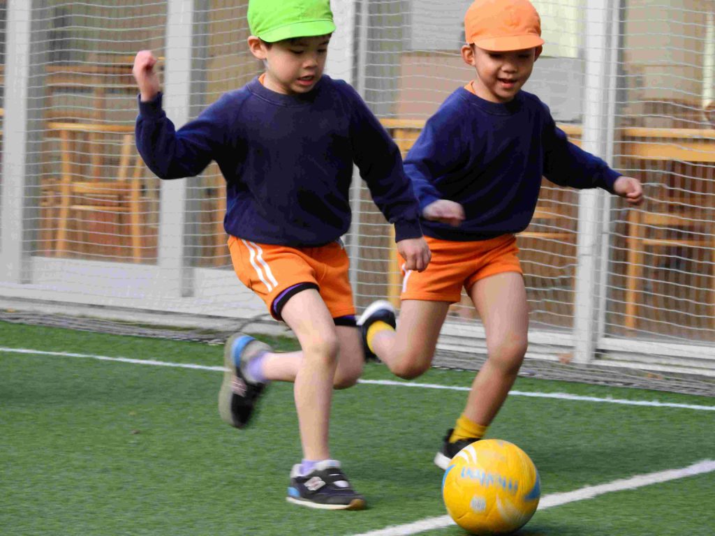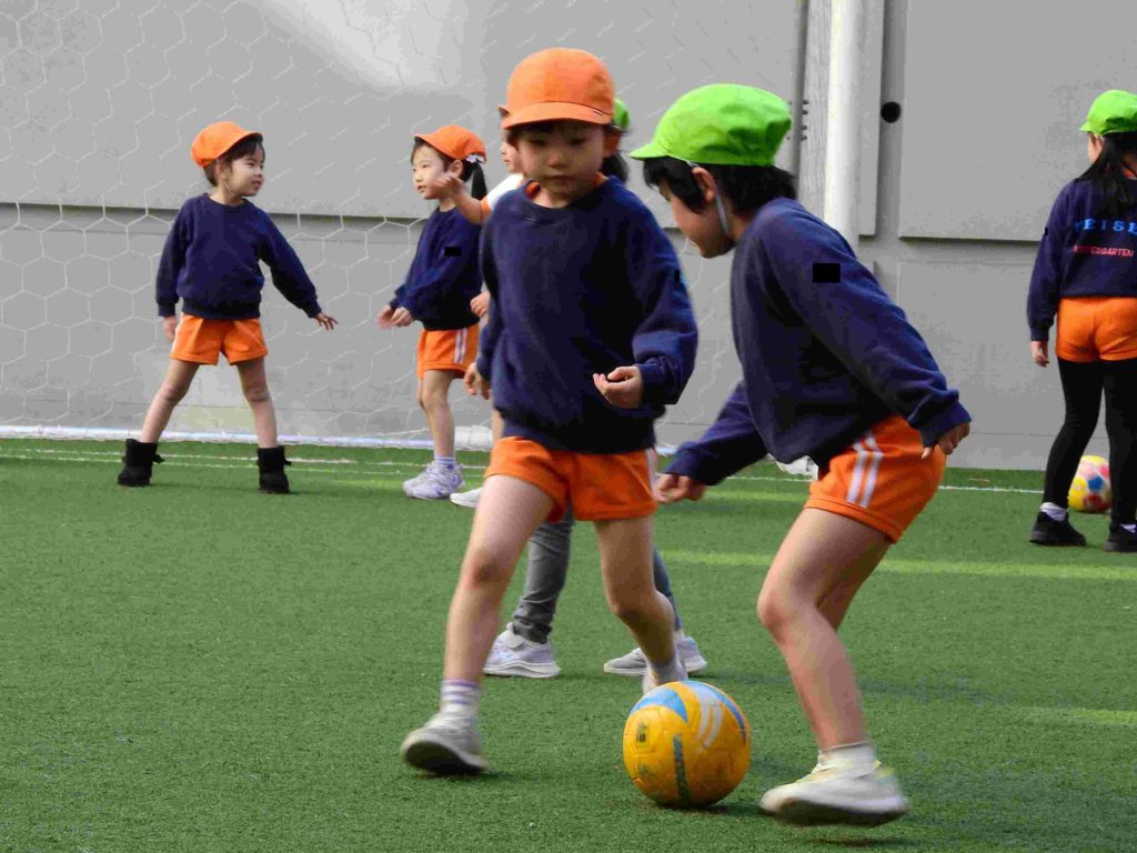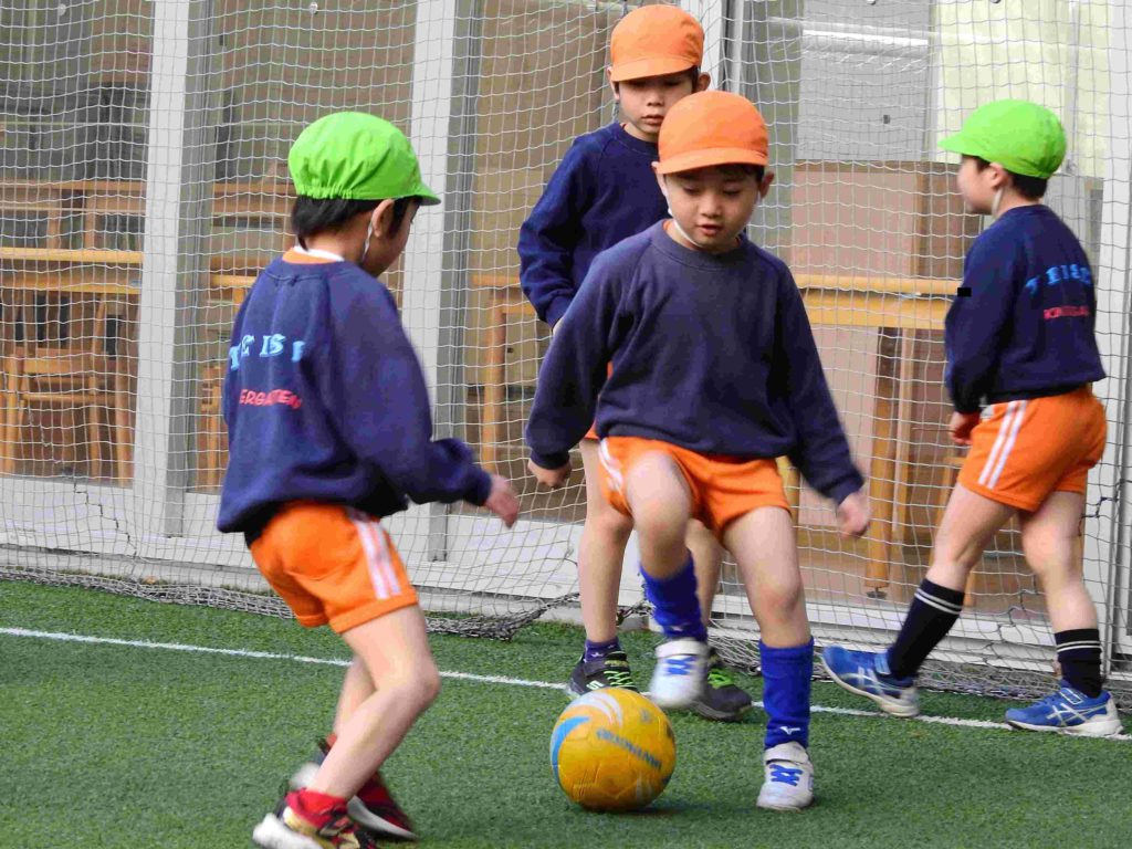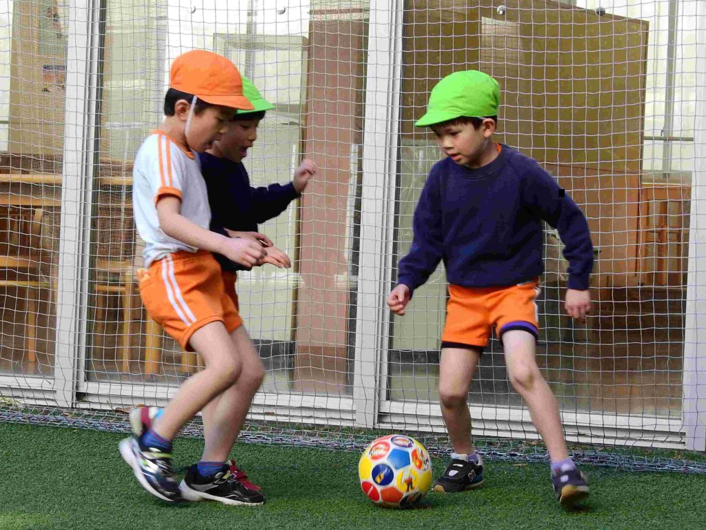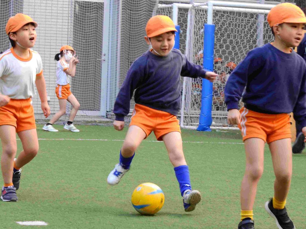 「楽しかった」「世界で一番楽しかった」、今日のサッカー大会が終わった時に年長組の子どもたちから出た言葉です。穏やかな日差しの下、中庭でボールを一生懸命追いかけていました。夢中になって走り回る子もいますし、息をハアハアさせて「ちょっと休憩」と言って一休みしてからまた駆け出していく子もいます。