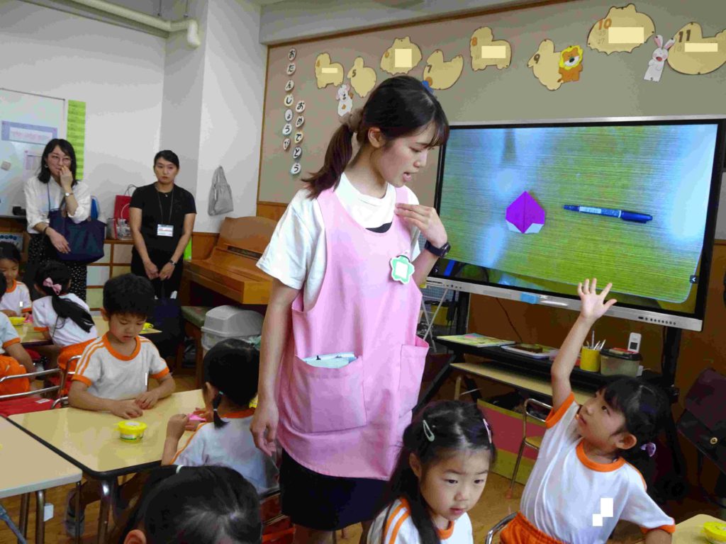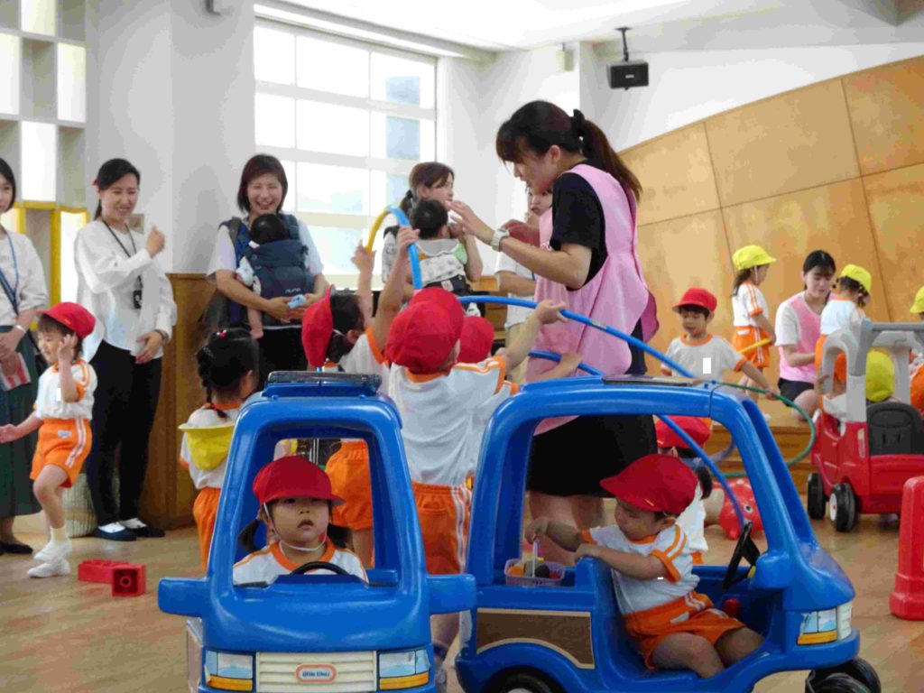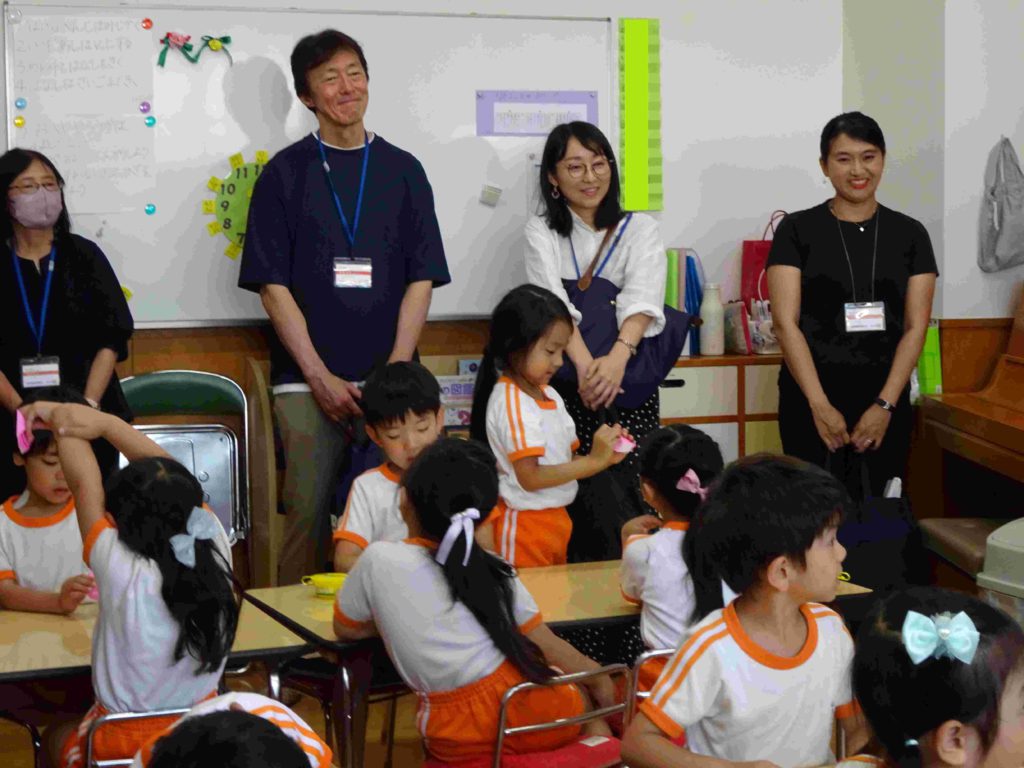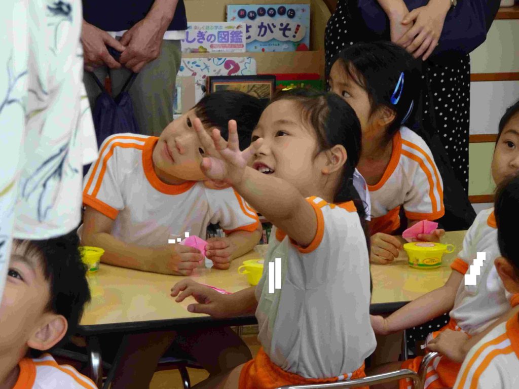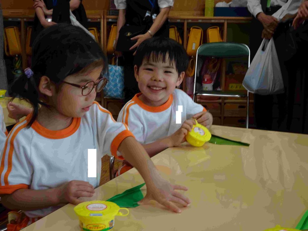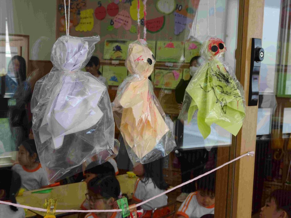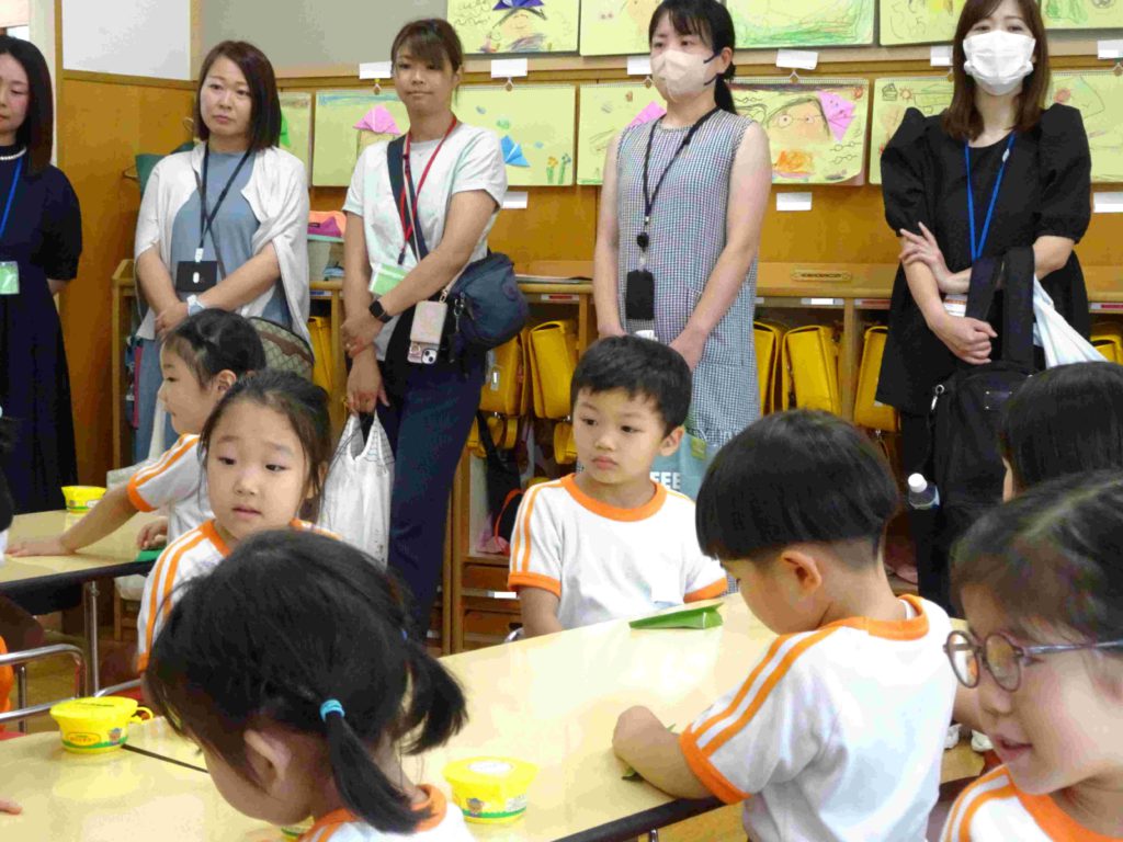 本日の保育参観日にはたくさんの保護者の皆さまがお見えになりました。ありがとうございました。子どもたちの幼稚園での様子をご覧いただき、お子様の成長をお暗示になることができたかと存じます。子どもたちもいつも以上に張り切っていました。年中組の前に飾ってある「てるてるぼうず」、効果抜群で、今日もカンカン照りです。