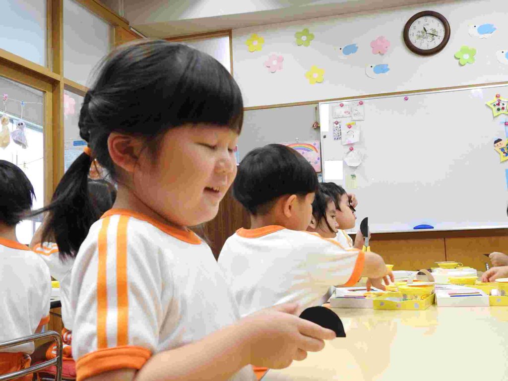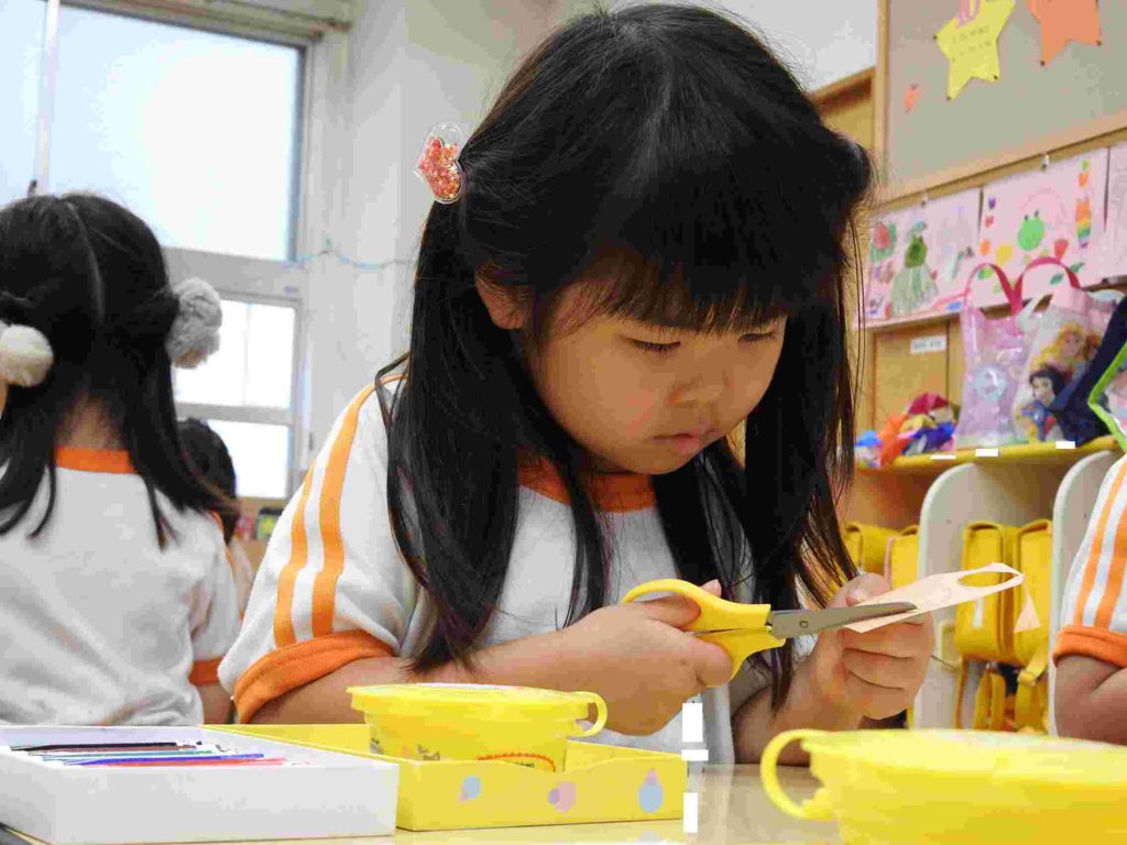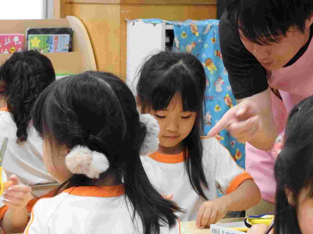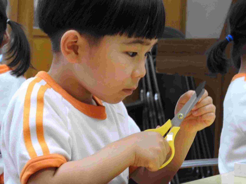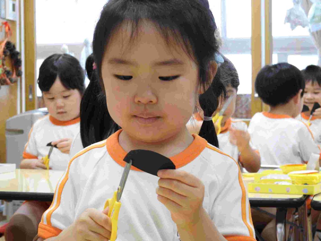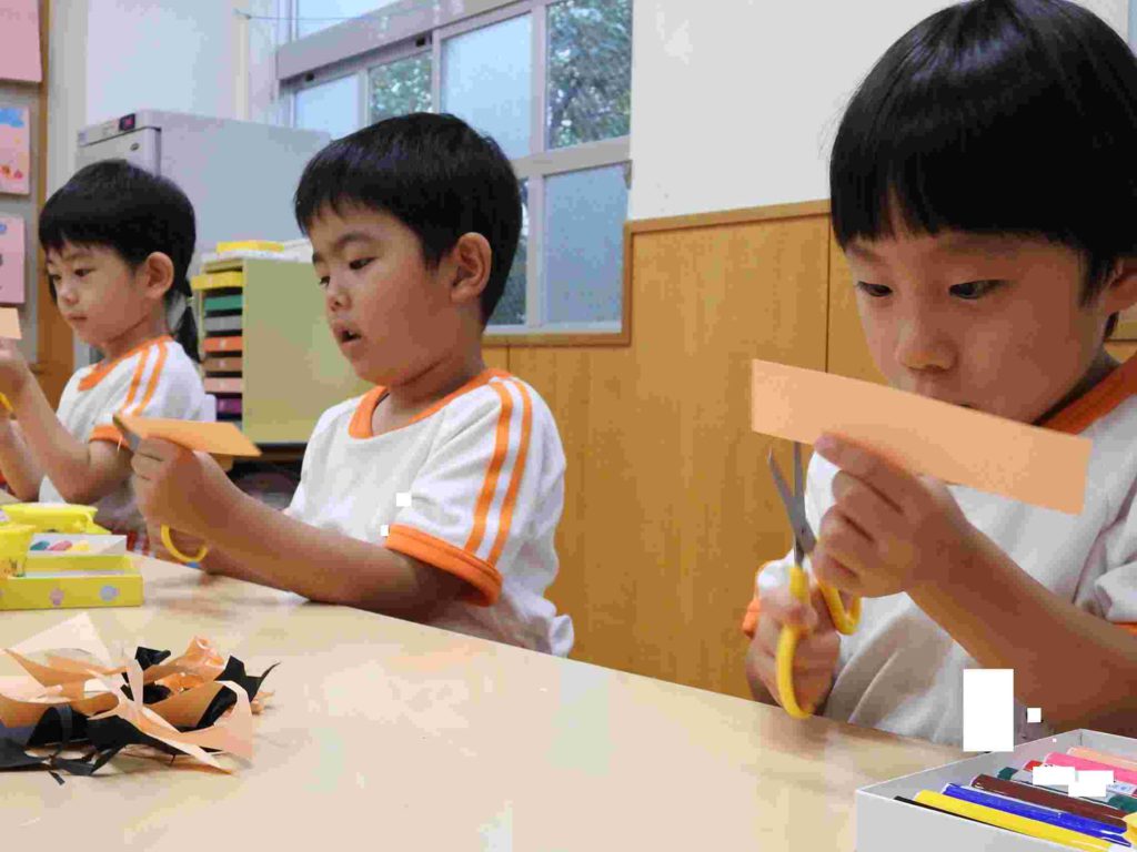 ハサミの使い方がとても上手になってきました。細かい作業も進めることができます。今日は「織姫、彦星の顔と手」を作りました。髪の毛の質感を出す工夫を先生と一緒に考えました。