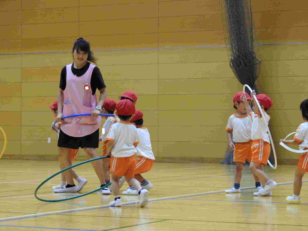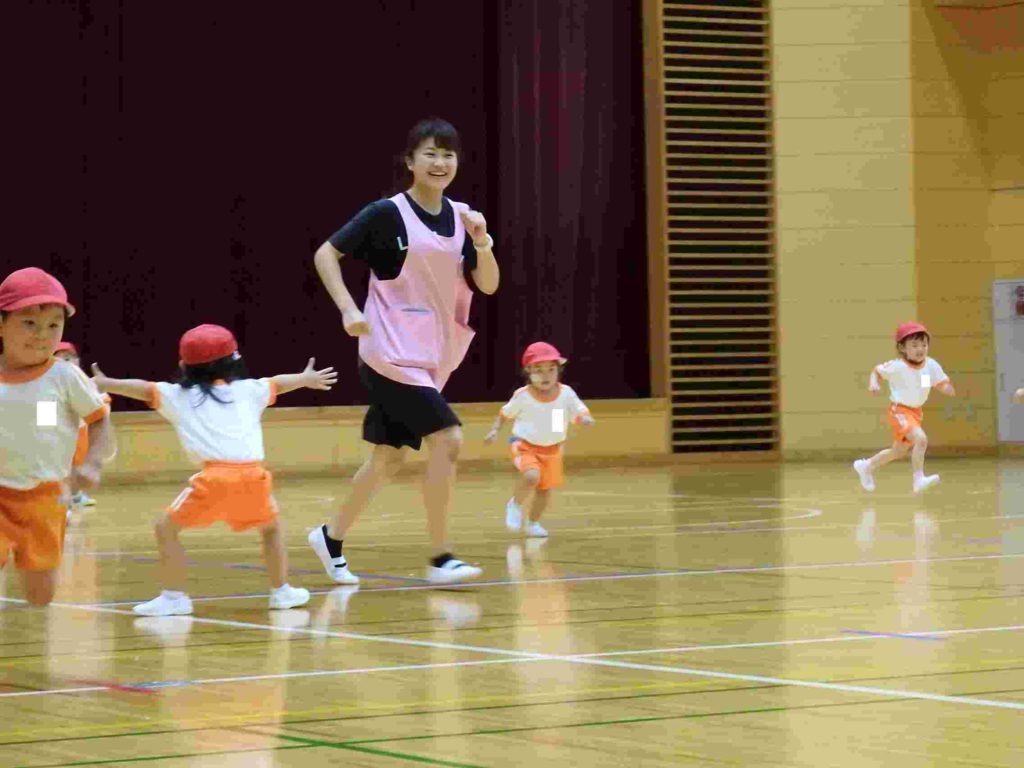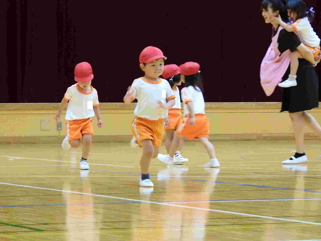 今日は広い体育館を独占しました。中学校高等学校が体育祭であったためです。子どもたちは走る!走る!フロアの端から端まで走り切る体力がついたんですね。「すごいね、がんばってるね」と話すと、何度も走って見せてくれました。
