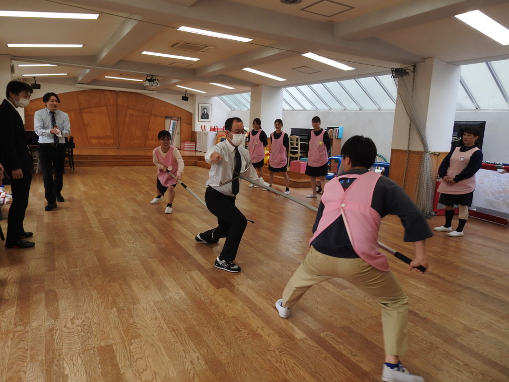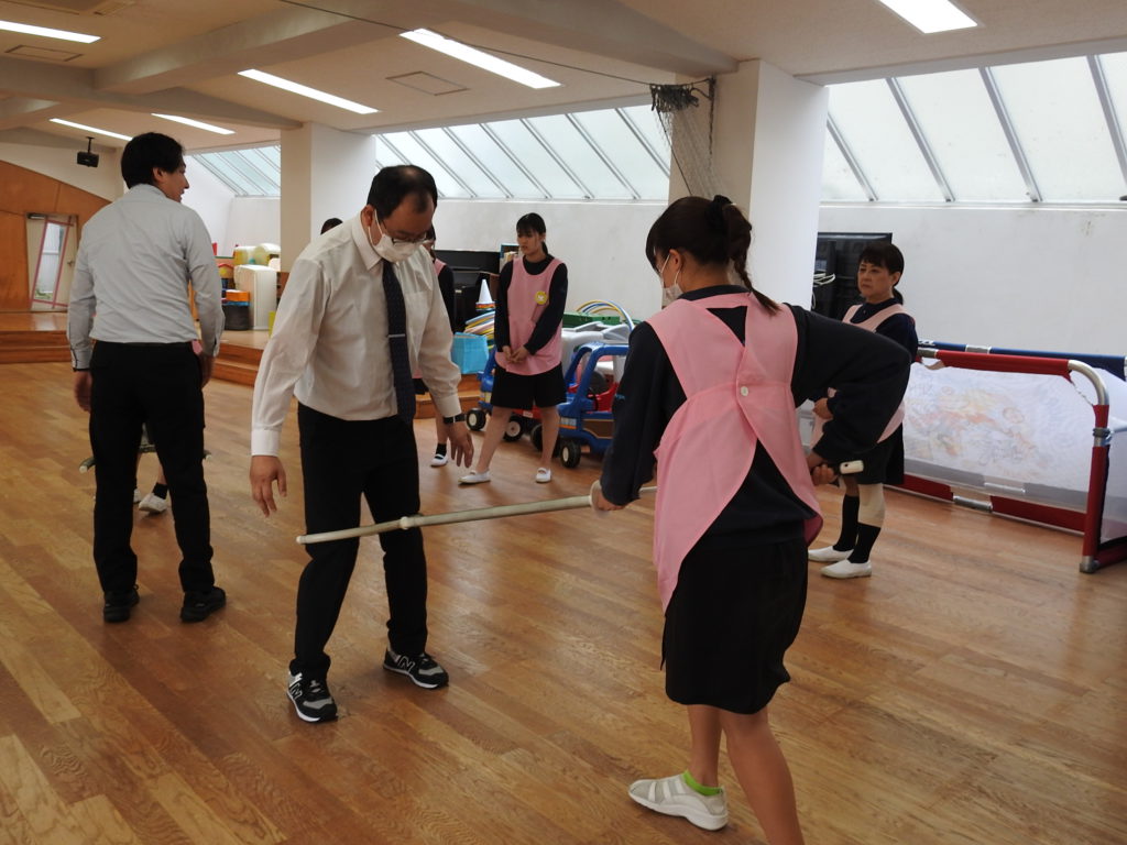専門家を招き、AED訓練と防犯訓練を行いました。万が一のことを想定し訓練に励みました。AED訓練では、幼児と大人では対応が異なることを改めて学ぶことができました。