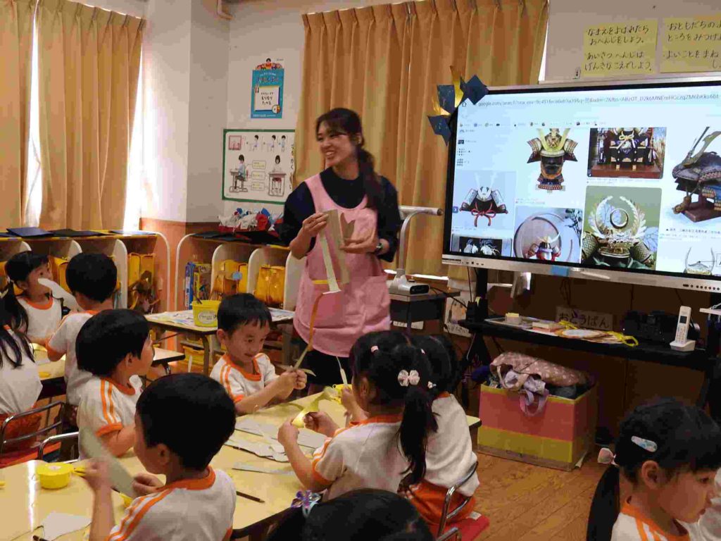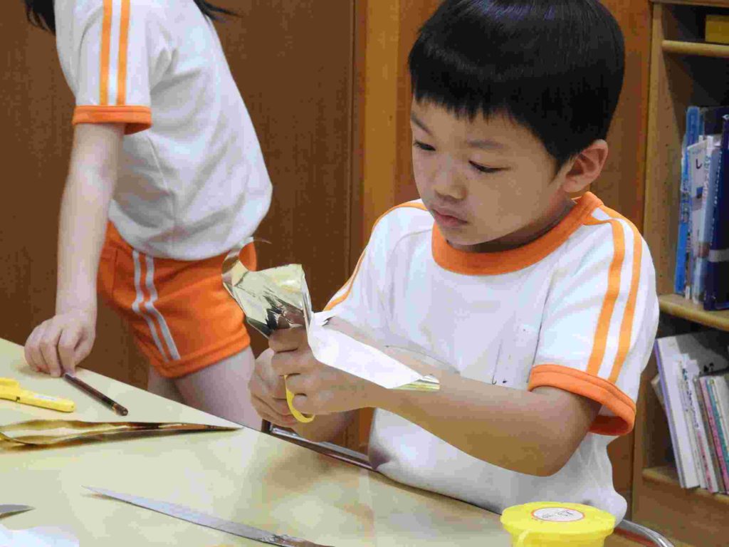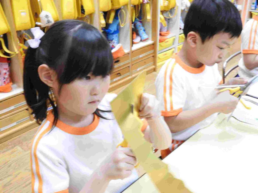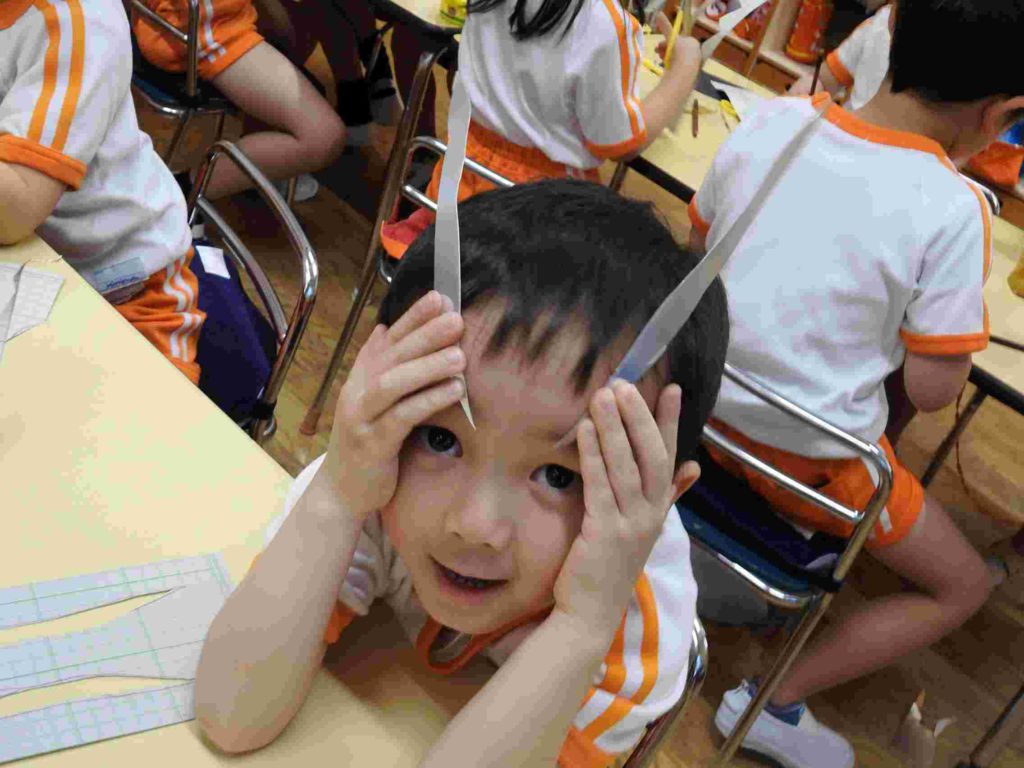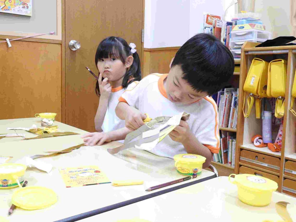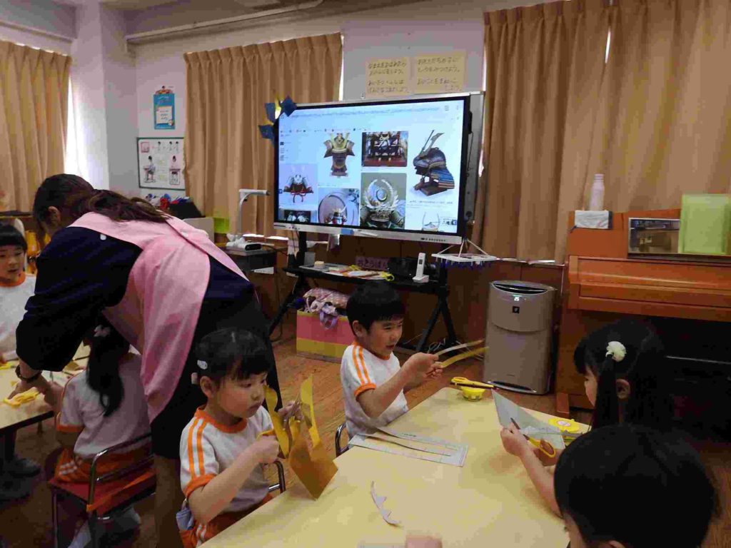 こどもの日に向けて「かぶと」の製作を始めました。とても立派でかっこいいかぶとができそうです。貞静幼稚園の製作はクオリティが高いです。年少でも早くからハサミの使い方を学ぶなど製作の経験をたくさん積んでいくからです。